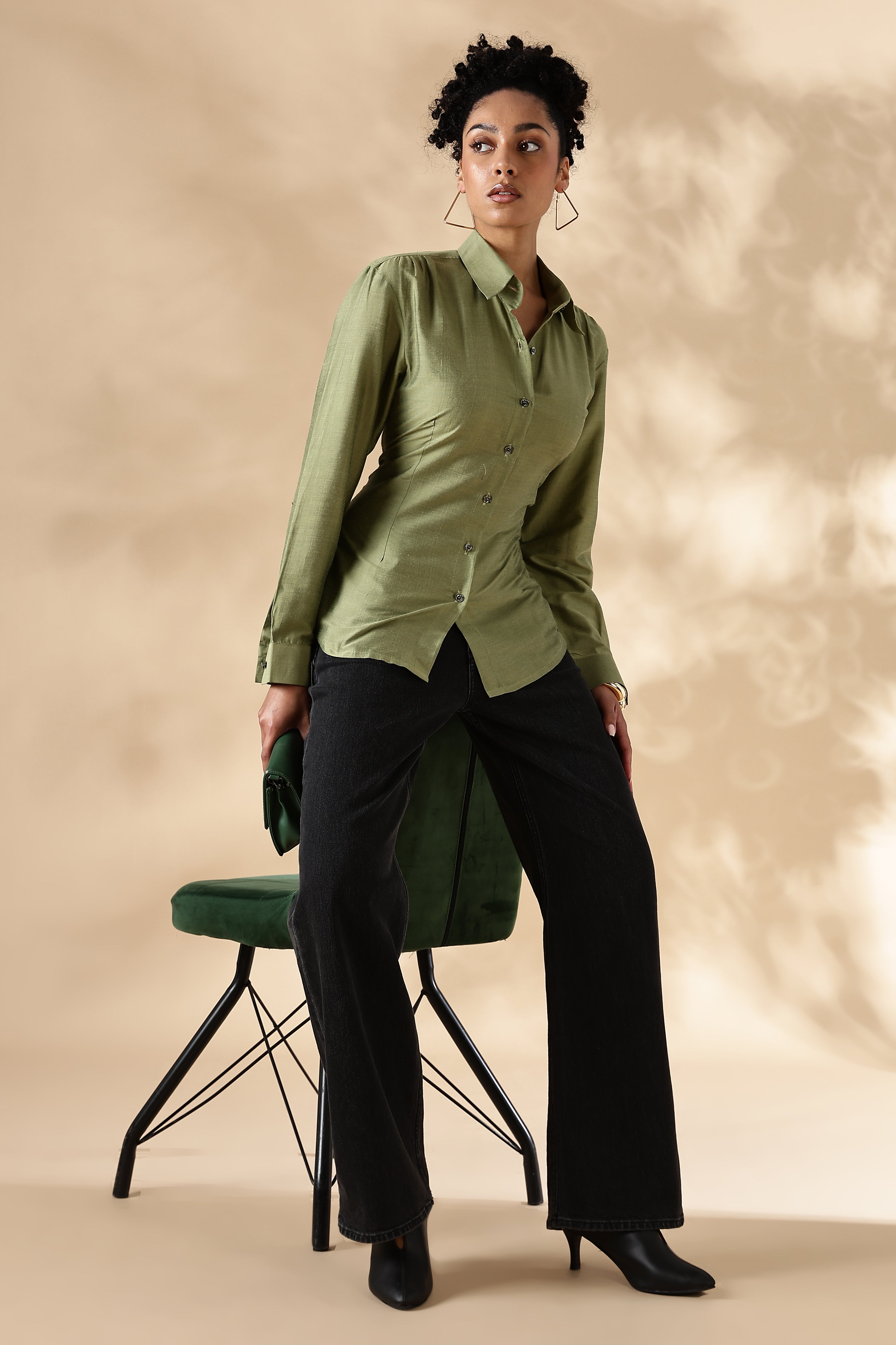 Fitted Cotton Silk Green Shirt