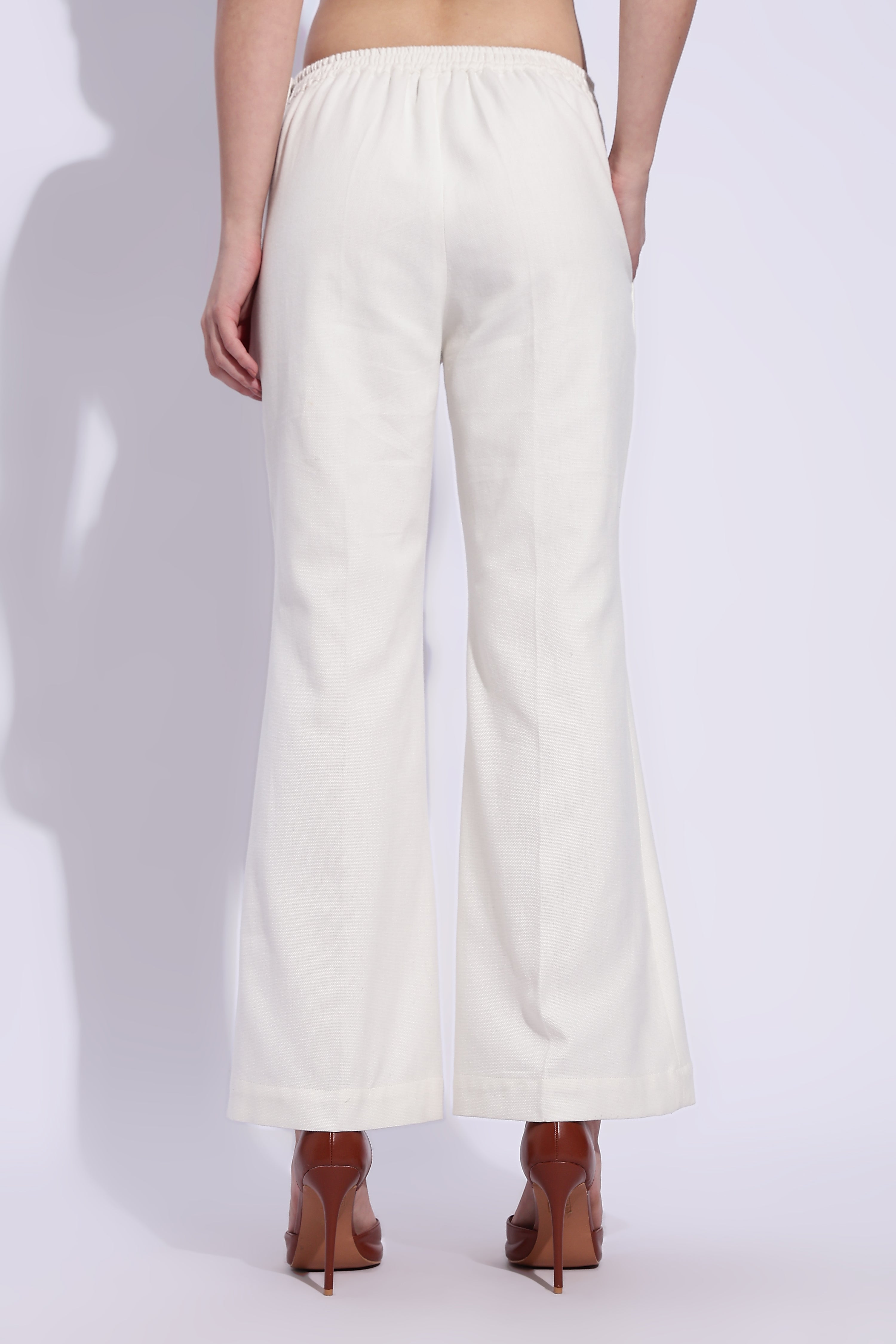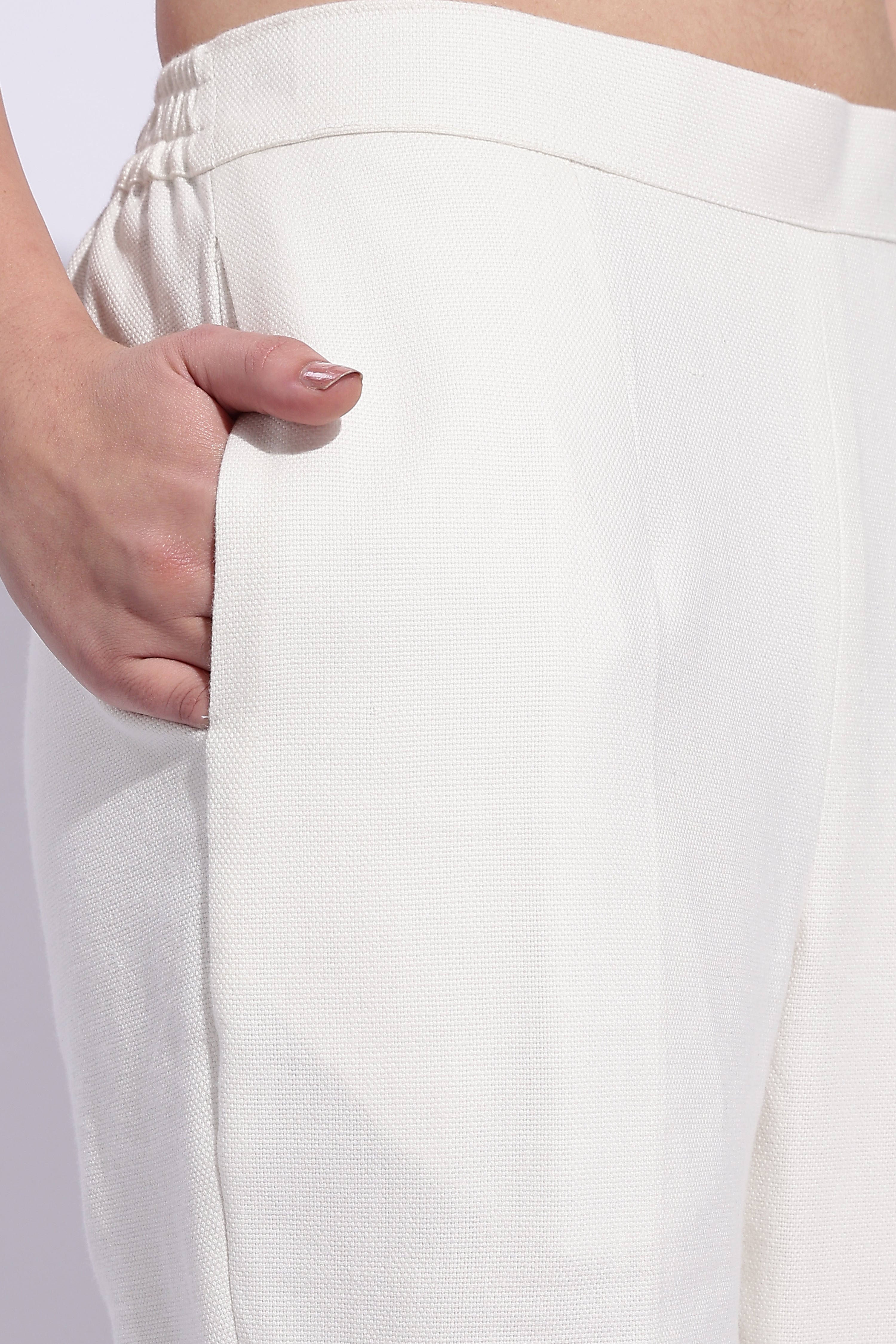 A tightly woven, structured natural fabric with a refined, crisp fall — breathable, durable, and ideal for silhouettes that hold shape.